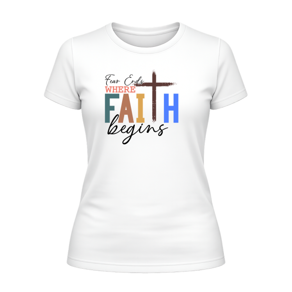 Fear Ends with Faith Ladies T-Shirt – Courage Through Christ